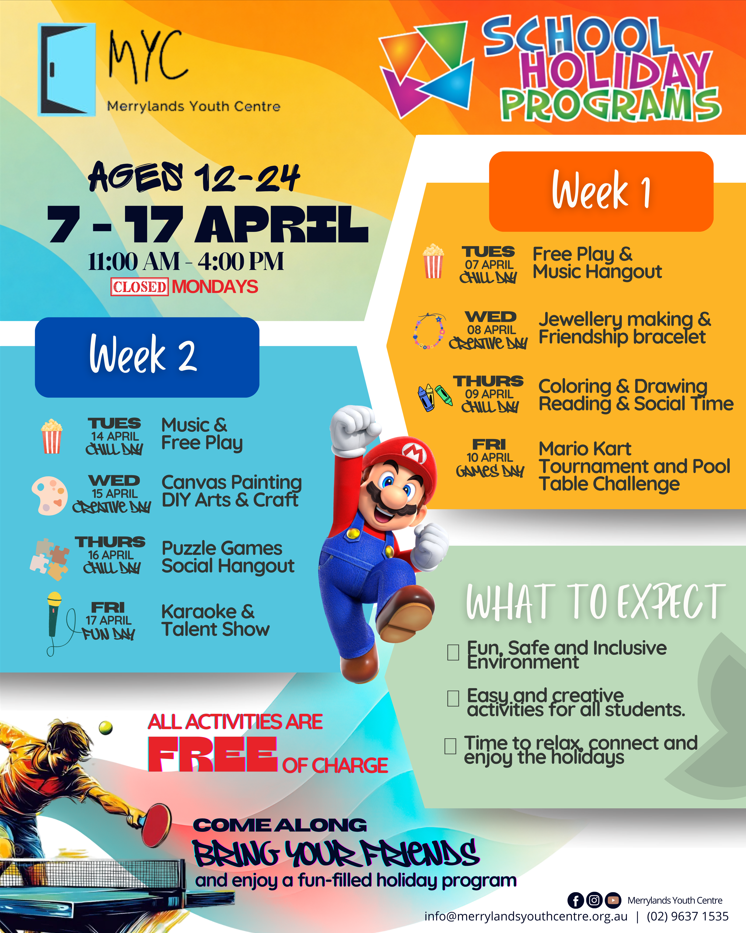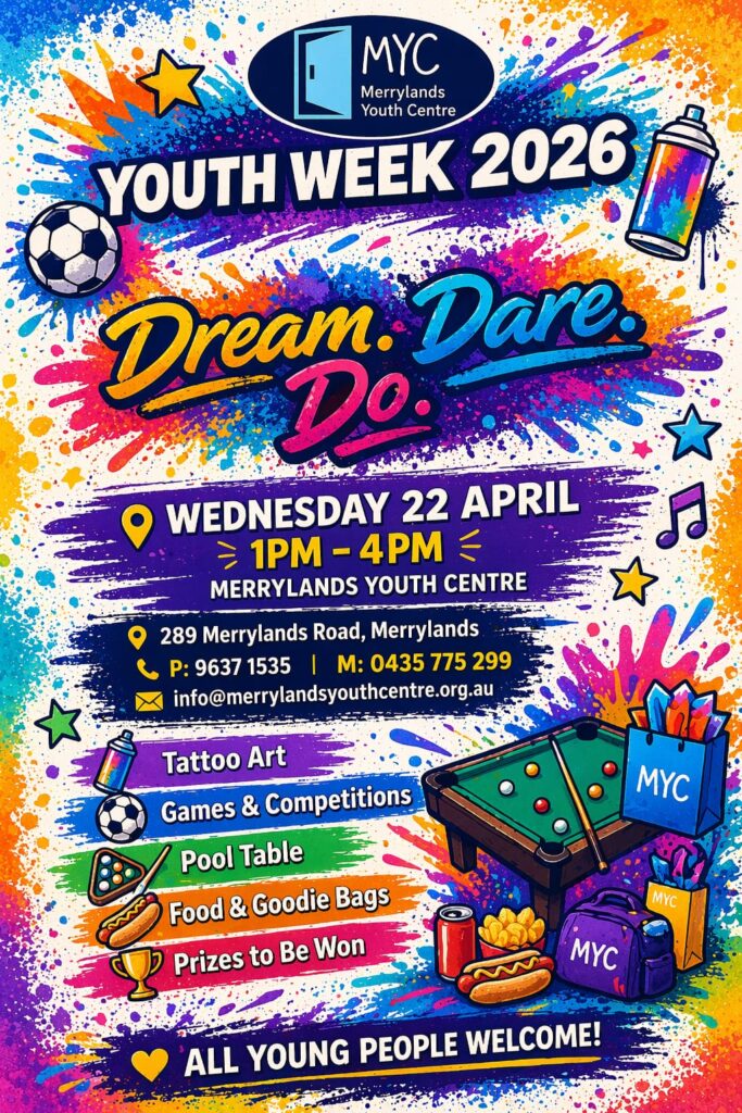 Merrylands Youth Centre (MYC) offers various resources and services to young people aged 12-24 years, living in the Cumberland Council LGA.